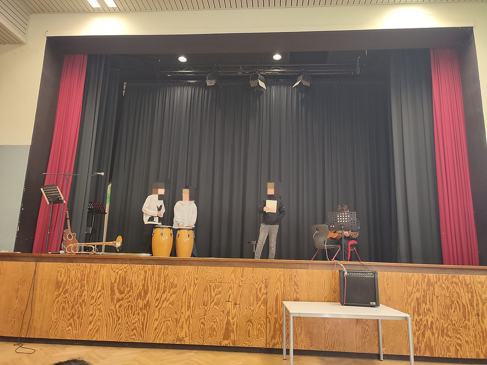 Und die Klasse GM2 hat einen Song gemacht und auf der Bühne vorgesungen.